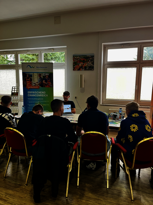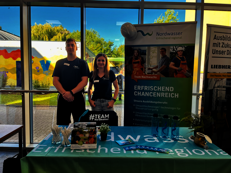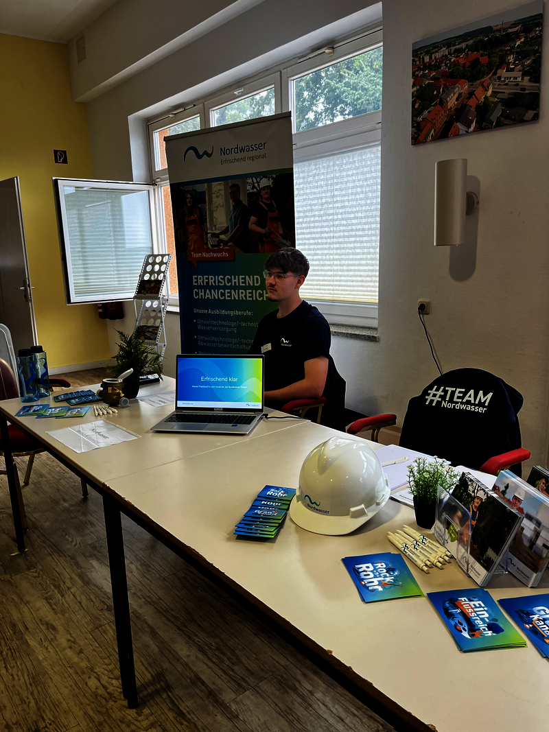 In der letzten Woche war ich gemeinsam mit meiner Kollegin Claudia Günther auf der Praktikums-Messe in der Nordlicht Schule. Dort stellte Ich den Schülerinnen und Schülern meinen Ausbildungsberuf als Rohrleitungsbauer vor. Ich informierte über die Aufgaben in meinem Job, den verschiedenen Möglichkeiten in und nach der Ausbildung und konnte ein paar interessierten Schülern eventuell zu einem Praktikum bei der Nordwasser überzeugen. Zum Abschluss gab es für die Besucherinnen und Besucher kleine Werbegeschenke.