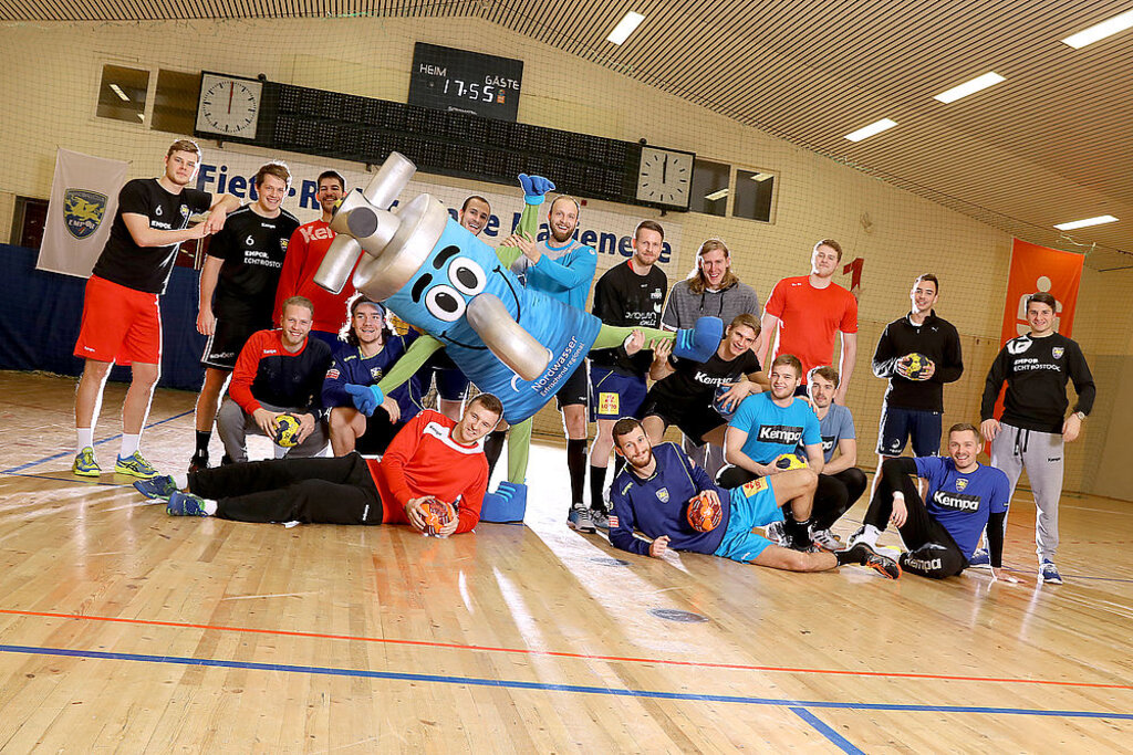 Das Nordwasser-Maskottchen „H2AJO“ überraschte gestern Abend die Mannschaft des HC Empor beim Training und wünschte alles Gute für das Spiel gegen den Dessau-Roßlauer HV am Sonntag.